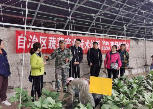 张建萍教授一行在设施蔬菜大棚中现场指导