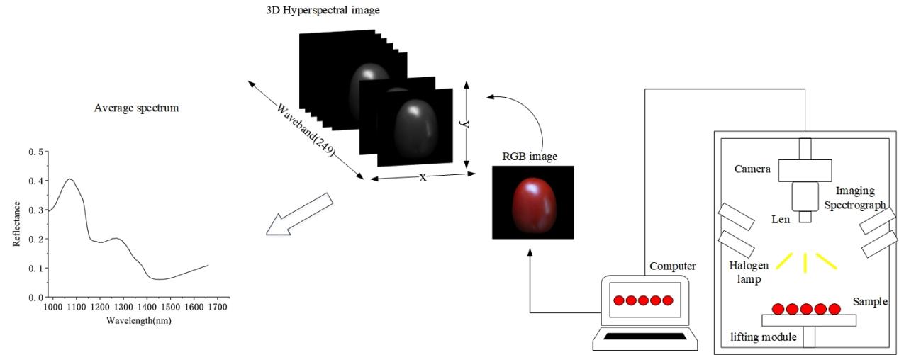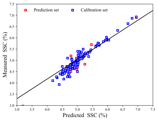 该研究利用近红外高光谱成像技术,建立循环神经网络(RNN)、随机森林(RF)和偏最小二乘法(PLS)的回归和判别模型,用于检测加工番茄的硬度、可滴定酸含量、可溶性固形物含量、番茄红素含量和成熟度,比较不同建模方法对加工番茄品质预测效果,研究结果显示,RNN模型对成熟度分类准确率比RF高出40%,比PLS高出17%。在品质参数预测方面,RNN模型表现出最高的R2值(大于0.87)。并通过计算贡献值来确定特征波长,用于解释模型,提升模型稳定性。研究表明利用近红外高光谱成像技术结合深度学习可以有效地预测加工番茄果实品质和成熟度,该研究为新疆加工番茄品质的快速无损检测提供一种创新方法。