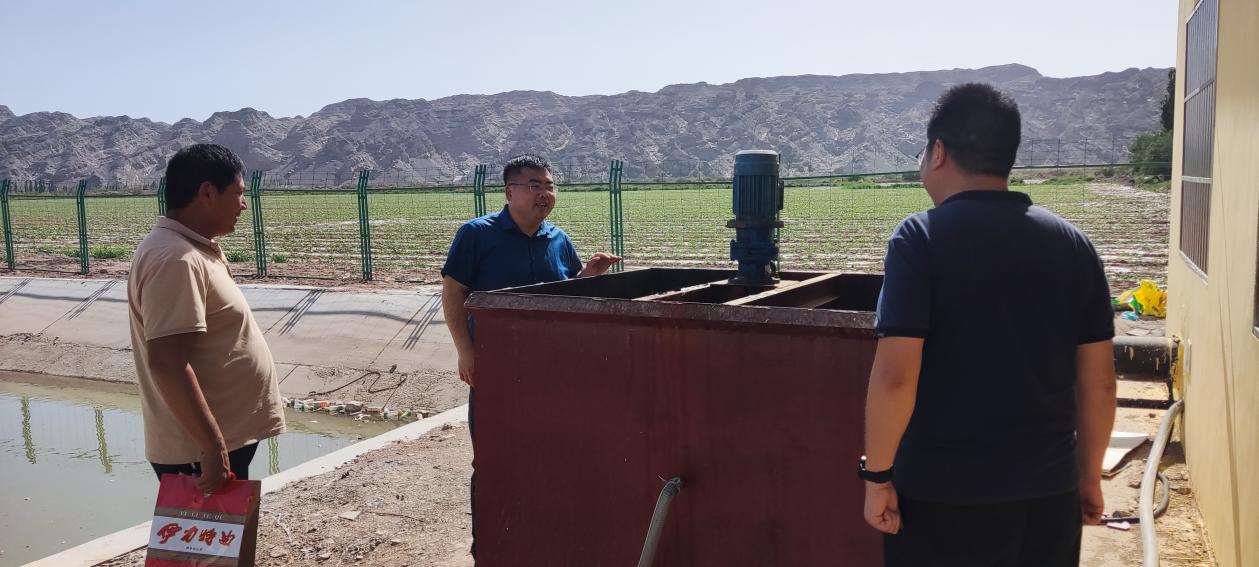 由于今年气象异常和棉田土壤盐渍化等问题,导致木沙艾力棉田中的棉花长势不好。针对此问题,张泽副教授给木沙艾力详细讲解了保水壮苗相关技术方法,推荐了用于保水壮苗的相关农资产品。随后,木沙艾力为张泽副教授介绍了新建的泵房和施肥装备,张泽副教授也为木沙艾力讲解了施肥设备的操作与注意事项,并为后期肥料施用方法进行了介绍。