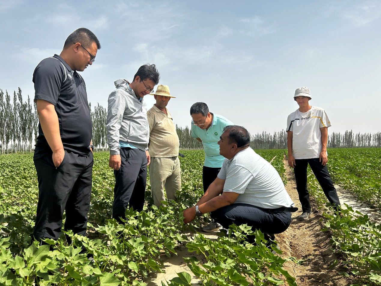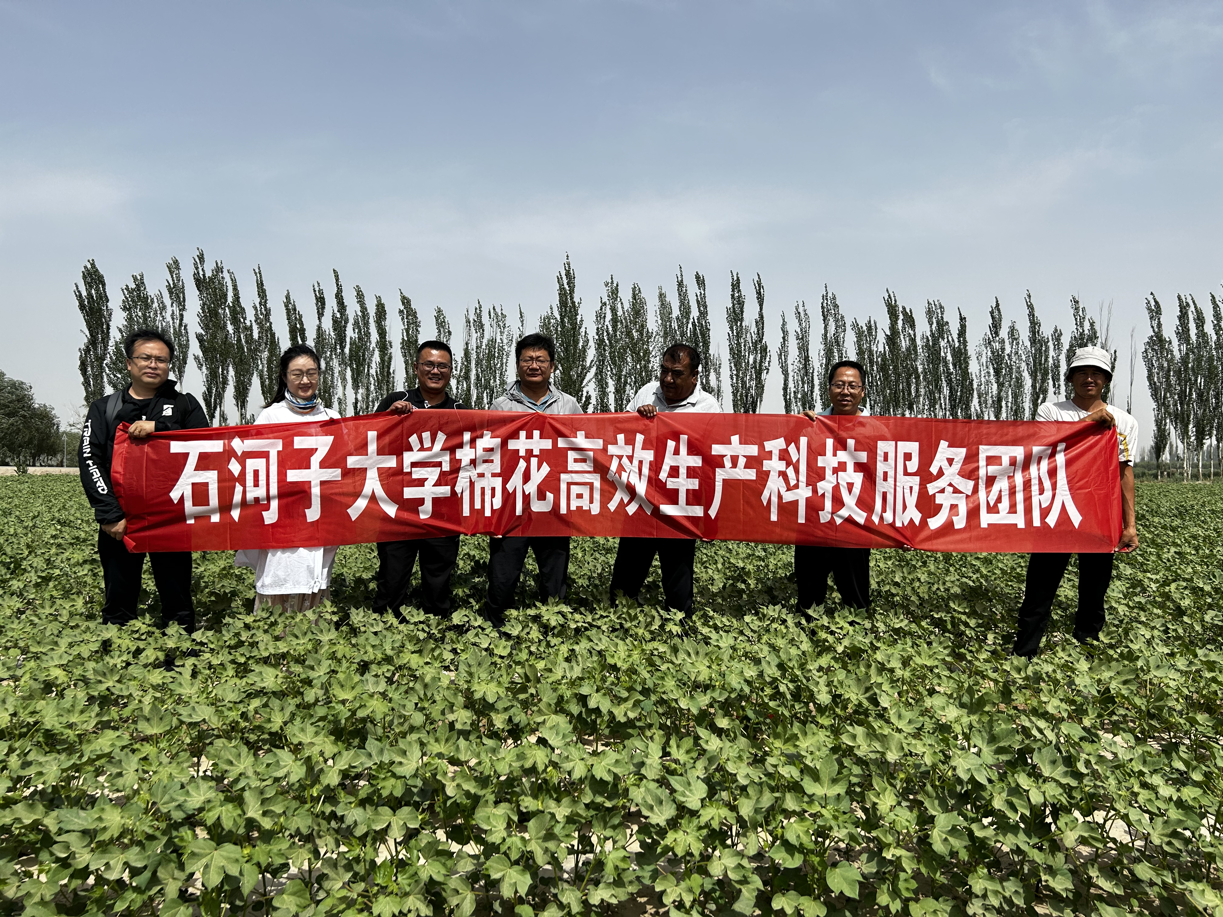 每年六月,是棉花花蕾形成和花芽分化的关键时期,棉花营养生长和生殖生长并进时间长。结合今春第三师播种期棉花普遍遭遇低温冷害、播种较晚的实际情况,为查看和解决棉花长势、现蕾、病虫害等问题,2023年6月16日-20日,由我校罗宏海教授、李志博副教授、第三师农业科学研究院王潭刚副研究员等教师组成的棉花科技服务团队,在53团4连工作队队长蔡永斌、连长艾尼万·艾拉,44团良种连副连长米力古·毛拉尼亚孜、科研处重大项目办主任赵虹老师等陪同下,先后赴53团4连、44团良种连和49团14连,开展了蕾期棉花高效生产技术服务。
