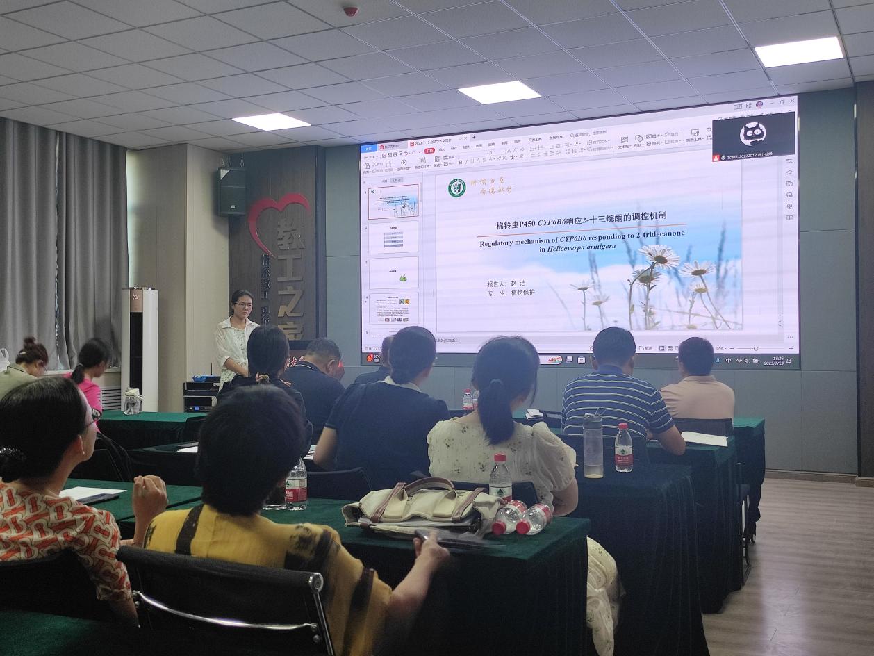 座谈会结束后,吴益东教授给植保系教工和研究生做了精彩报告,报告深入浅出,引起热烈讨论,与会老师和同学一致表示受益匪浅。最后,赵洁副教授做了工作汇报,吴益东教授对工作进行了点评和指导。
