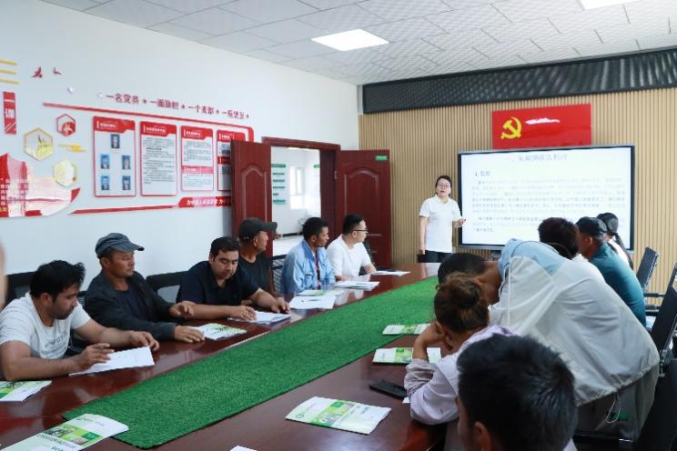 在四十四团原种连,团队李志博老师基于目前南疆土壤盐渍化严重、棉花种植过程中棉花耐盐碱关键技术不清等产业问题,从服务团队有关情况简介、作物耐盐碱关键基础理论及原理介绍、棉花播种出苗耐盐碱关键技术三个方面进行专题讲座,重点涉及播前整地、培土改肥、耐盐碱棉花品种推荐及其品种特征特性等知识内容。