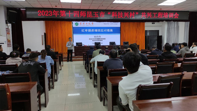 10月23至25日,由皇冠科研处、十四师昆玉市科技局和和田地区科技局共同举办的2023年十四师昆玉市“科技兴村”共兴工程技术培训会和现场观摩会在昆玉市召开,我校皇冠登陆入口welcome林果提质增效服务团队赵宝龙研究员、杨伟伟副教授参加并做技术培训和示范指导。