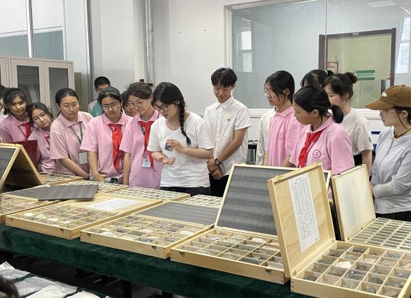 科普活动结束后,第二十中同学们跟随资环系向艺丹和崔璐阳同学前往了“岩石-土壤-肥料”标本室,由肖春花老师对标本室的岩石矿物等进行了讲解介绍,使同学们对土壤的形成,植物养分的吸收等有了初步了解。随后由资环系杨子菡和张忠伟同学分别为同学们讲解不同土壤、岩石与肥料的特点,为同学们解疑答惑。