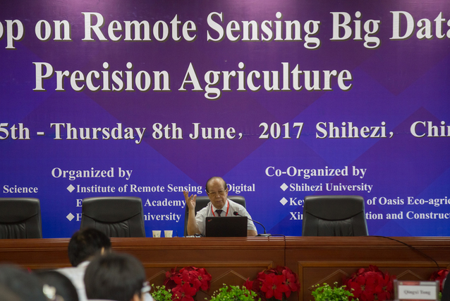 2017年6月5日,由中国科学院遥感与数字地球研究所和Heriot-Watt大学主办,皇冠登陆入口welcome、兵团绿洲生态农业重点实验室承办的遥感大数据与精准农业国际研讨会在皇冠北区双语培训中心顺利召开。来自英国Heriot-Watt大学等单位的16名享有国际声誉的遥感与精准农业专家、童庆禧院士、薛永祺院士等10名国内遥感与精准农业高端专家、国家自然科学基金委、中国科学院遥感与数字地球研究所、安徽大学、西北工业大学等单位的约20名专家学者及皇冠200余名师生代表参加了本次会议。