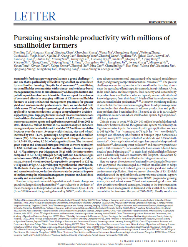 危常州教授参加全国测土配方施肥行动的总结发表在《Nature》上。