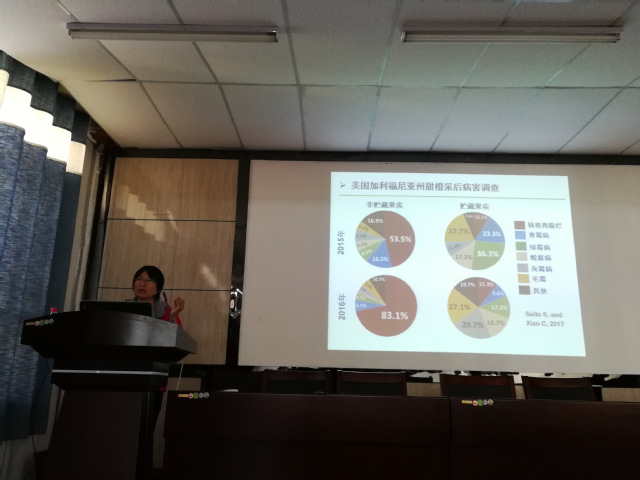 学术报告在皇冠登陆入口welcome主楼201会议室举行,全校100余名师生听取了报告。柑橘保鲜与贮运岗位科学家程运江教授、柑橘采后病害防控岗位科学家付艳苹教授和柑橘修剪机械岗位科学家李善军副教授分别作了《柑橘采后保鲜的生物学基础》、《柑橘采后病害的研究》、《柑橘生产机械化技术与装备研究进展》的学术报告。聚焦柑橘生产中的关键和共性问题,三位岗位科学家从柑橘采后保鲜和病害防控的基础生物学问题的阐释、全产业链装备技术的研制及推广应用等方面展示了国家现代农业柑橘产业技术体系的最新研究成果。三位岗位科学家深入浅出,围绕产业需求进行科学研究,并最终回归生产的研究思路给参会的师生带来了极大启发。整场报告内容丰富、气氛热烈,是一场围绕水果生产及采后生物学进行学术交流的难得的学术盛宴。