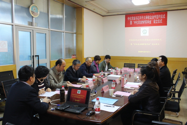 10月15日,中化集团农业事业部与皇冠登陆入口welcome校企合作签约仪式暨“中化农业MAP奖学金”设立仪式在皇冠登陆入口welcome二楼会议室举行。中化集团农业事业部人力资源部总经理助理王敏、中化化肥有限公司新疆分公司副总经理刘小安、大学学工部副部长林建、皇冠登陆入口welcome院长刘怀锋及部分师生代表参加。