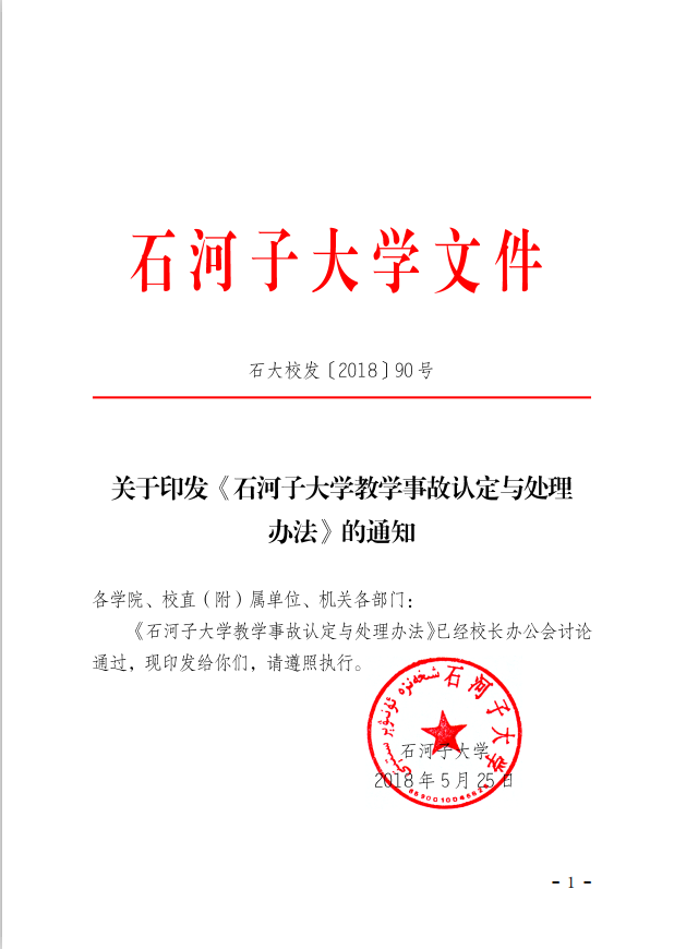 石大校发[2018] 90 号 关于印发《皇冠教学事故认定与处理办法》的通知.pdf