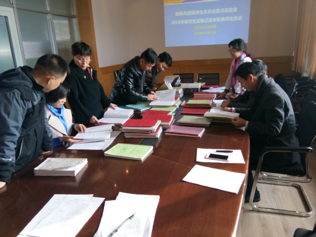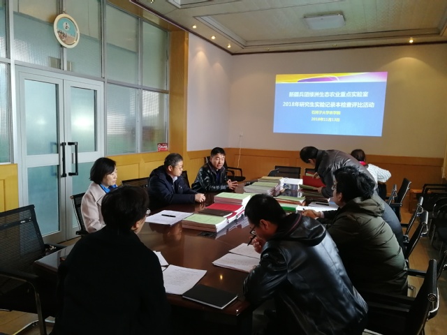 2018年11月12-13日,新疆生产建设兵团绿洲生态农业实验室开展第三次研究生科研工作记录本全面检查工作,检查对象包括本实验室2016、2017级的120名研究生。实验室主任孔秋生、常务副主任吕新及各系的学术带头人等7人担当评委。