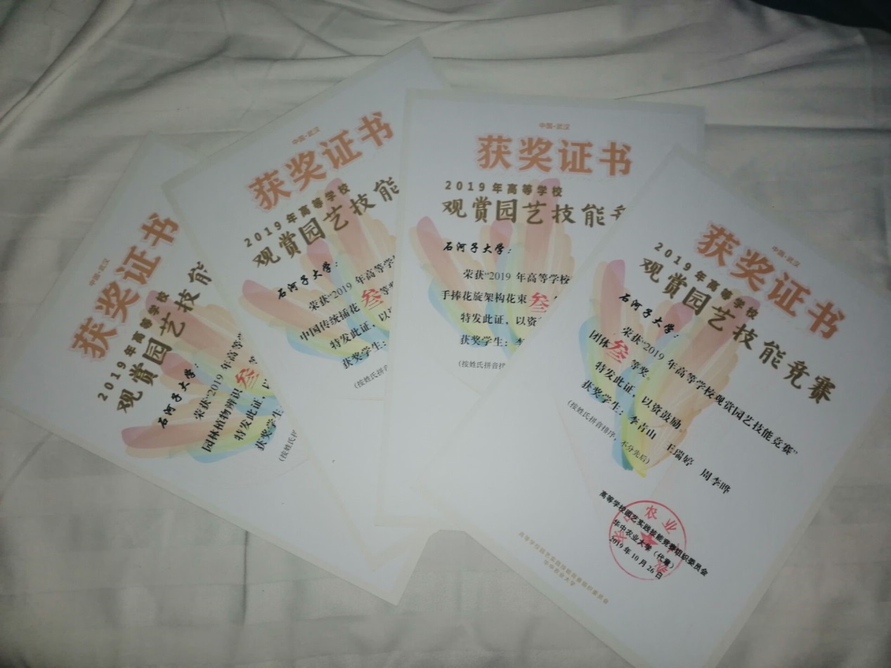 2019年10月25日-26日,第一届高等学校观赏园艺技能竞赛在皇冠隆重举行,林学系韩卫民教师带队园艺和园林专业李青山、王瑞婷、周李晔同学参赛并获得园林植物辨识竞赛、手捧螺旋架构花束设计与制作竞赛和中国传统插花比赛三等奖的优异成绩。此次竞赛共有中国农业大学、华南农业大学、安徽农业大学等全国21所农业院校学生参加,竞赛内容包括园林植物辨识、中国传统插花、手捧螺旋架构花束设计与制作三部分。