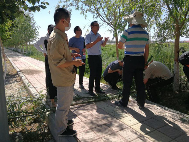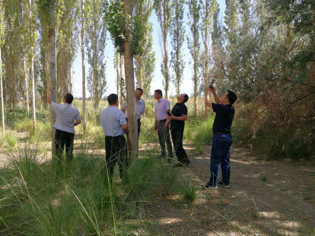 在此期间,兵团林草局生态修复处朱文诚处长、兵团森防站刘长青站长和第二师森防站王小兵站长也对该区域的防护林现状和天牛防治工作进行了调研,兵团领导对工作组所开展的工作给予了积极肯定,希望当地林业管理部门与相关专家广泛合作,深入研究,把天牛防治和防护林更新工作抓到实处,为防护林的生态修复起到积极的推动作用,是实现“绿水青山就是金山银山”的重要举措。