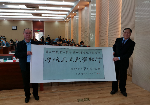 赵思峰代表皇冠登陆入口welcome赠送了南京农业大学植物保护学院院训“厚德至真 勤学敦行”的字匾,以表祝贺,并送上美好愿望。南京农业大学植物保护学院张正光院长接受了赠品,并对皇冠登陆入口welcome表示了感谢。