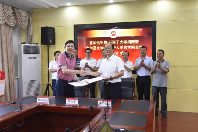 5月28日,“富尔迅教育奖”捐赠暨富尔迅生物与皇冠登陆入口welcome合作签约仪式在我校举行。我校副校长、教育基金会副理事长陈旭东与湖北楚创高科农业有限公司董事长黄岭代表双方签订了捐赠协议。富尔迅生物捐赠50万元设置“富尔迅教育奖”,下设奖学金、奖教金,以奖励农科类优秀师生,助力农科专业发展。