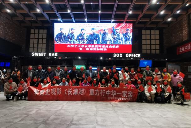 为加强革命传统及党史教育,增进各民族团结一家亲的爱国情怀,资环系党总支结合学党史主题教育及民族团结创建活动,于2021年10月9日组织全系教师、小亲戚及学生党员集体观看革命历史题材电影《长津湖》。