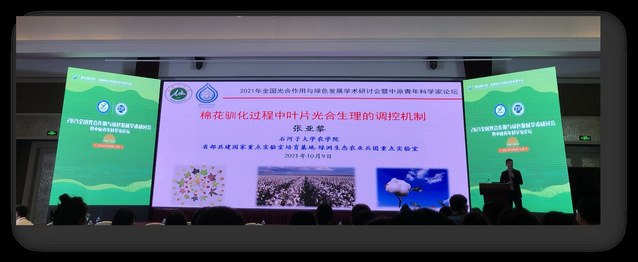 10月8—11日,张旺锋教授团队受邀到河南大学参加“2021全国光合作用与绿色发展学术研讨会暨中原青年科学家论坛”。团队成员张亚黎教授以“棉花驯化过程中叶片光合生理的调控机制”为题报告了团队的最新研究成果。张亚黎教授以光合作用二氧化碳传输过程中不同组分之间的权衡关系和比叶重的调控机制为切入点,就棉花驯化过程光合能力提高以及结构优化的机制进行了报告。张亚黎教授的报告引起了与会者的浓厚兴趣;研究和工作成果获得了与会专家的肯定和赞扬。报告内容是最新发表在国际知名期刊Journal of Experimental Botany和Photosynthesis Research上的成果。