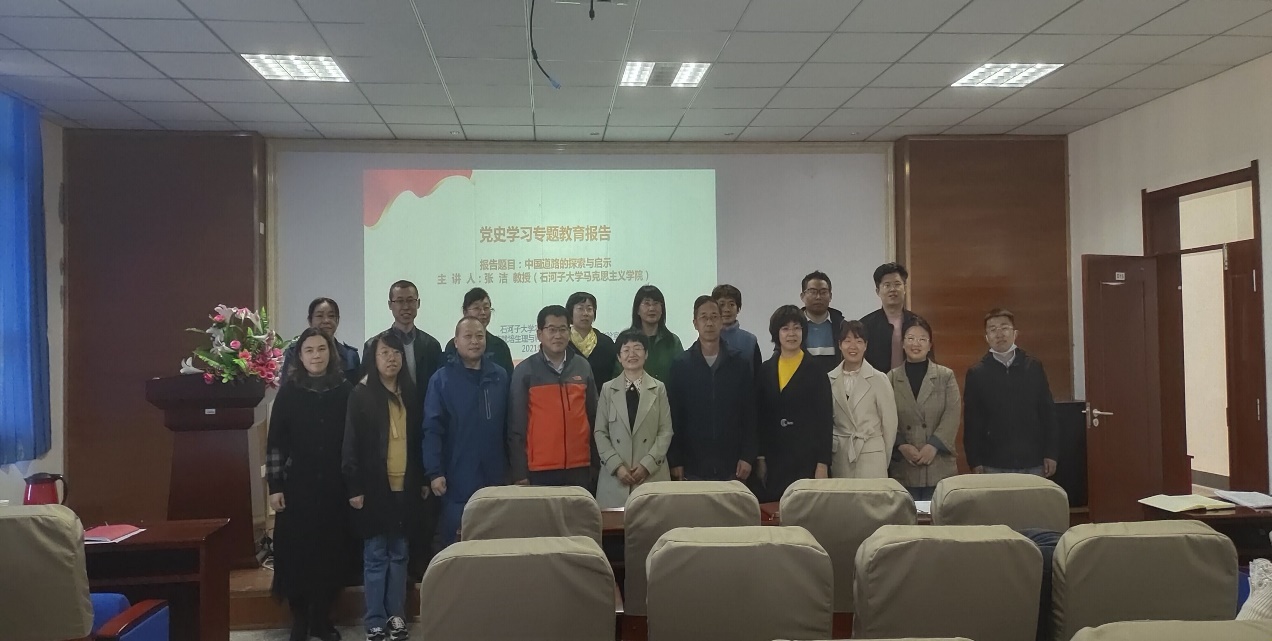 张洁教授以《中国道路的百年探索与启示》为党史学习主题,以纪念辛亥革命110周年大会上习总书记发表的重要讲话为切入点,围绕三点展开讲述。一是道路探索是贯穿中国共产党百年奋斗史的一条主线;二是中国特色社会主义是实现中华民族伟大复兴的唯一正确道路;三是坚定中国发展的道路自信。指出中国特色社会主义道路是一条符合中国实际,反映中国人民意愿,适应时代发展,不仅走得对,走得通,而且也一定能够走得稳的道路。由点到面、由历史到理论,逐步提出中国特色社会主义理论体系。随后讲述了中国特色社会主义的正确性和坚定中国发展的道路自信。在新时代下,坚持共产党领导下的中国特色社会主义道路,坚持独立自主,强根固本,守正创新,贡献中国智慧和中国力量。