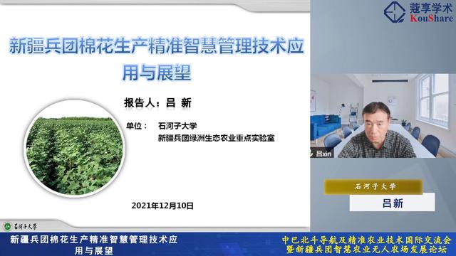 此次论坛围绕北斗导航、精准农业、智能装备、农业大数据、遥感、物联网等方面开展培训和交流,来自巴基斯坦、巴西、巴拿马、厄瓜多尔、委内瑞拉、黎巴嫩、哥伦比亚、伊朗、俄罗斯、智利、印度、印度尼西亚、加纳、土耳其、阿根廷、德国、意大利、摩洛哥、坦桑尼亚、墨西哥等二十个国家的90多位学员在线参加交流。皇冠登陆入口welcome吕新教授担任专家论坛主持并做大会报告,吕新教授以“新疆兵团棉花生产精准智慧管理技术应用与展望”为题,从我国农业发展现状和存在的关键问题及挑战等方面,介绍了智慧农业如何助力我国农业现代化发展,围绕团队在棉花水分养分诊断与水肥一体化应用、病虫害精准监测预警技术、农情信息监测及无人机精准喷药技术、棉花智能农机装备以及棉花农业大数据技术及管理平台等方面的最新研究成果作出报告。吕新教授的报告引起了与会者的浓厚兴趣,研究和工作成果获得了与会专家的肯定和赞扬。