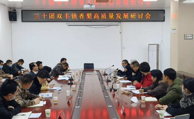 2021年12月5日上午,“库尔勒香梨”无人机授粉关键技术研究与示范项目组赴新疆生产建设兵团第二师参加“三十团双丰镇香梨高质量发展研讨会”,同新疆农业大学、第二师农业科学研究所、河北农业大学、浙江大学等单位专家、三十团负责同志、三十团连队代表一起探讨了库尔勒香梨产业发展中存在的花果管理、肥水管理、老果园改造、树体结构、储运包装和病虫害防控等关键问题,并提出了切实可行的指导意见。
