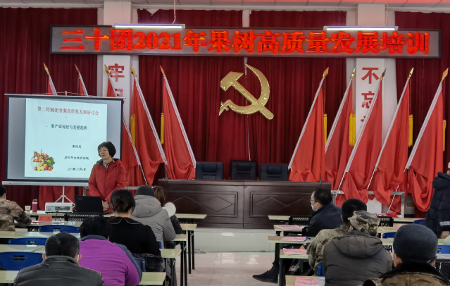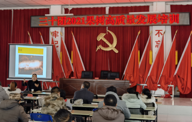 12月5日下午,皇冠鲁晓燕教授、新疆农业大学何天明教授赴三十团连部,向生产一线职工代表介绍了梨产业现状与发展趋势,就库尔勒香梨肥水运筹、机械化作业等方面向连队职工进行了报告交流,专家同与会职工代表就香梨生产中遇到的具体问题进行了深入交流并提供了现实可行的解决措施。