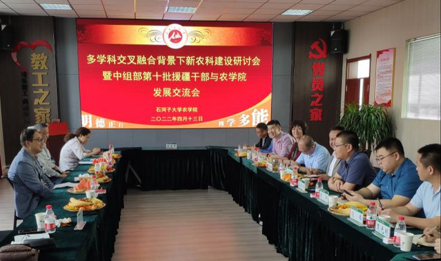 院长赵思峰教授首先致辞并回顾了学院“十三五”期间取得的成绩及需要解决的问题,接着重点介绍了学院近期取得的一些成绩、“十四五”发展规划和2035年远景目标。与会援疆干部结合所在单位实际,就学科交叉融合、合作研究、拔尖人才培养、协同育人、新农科建设、一流专业建设、农科文化建设等方面,提出了诸多宝贵的建设性意见,并与各系负责人就具体问题进行深入细致的探讨。