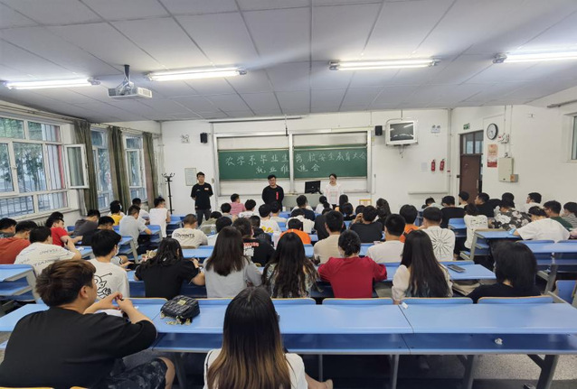 会议伊始,聂新辉书记就目前的毕业生安全教育工作、目前严峻的就业形势以及部分同学就业心理进行分析,并对毕业安全教育、毕业离校程序以及就业等问题进行讲解。聂新辉在讲话中提出几点希望:一、目前考研已落下帷幕,希望同学们保持清醒,利用学校学院创造的各种机会,积极寻求合适自己的职业,踏实走好毕业前的每一步;二是希望同学们保持奋斗,主动把握人生的每一步,毕业在即,同学们更是要心怀感恩,对教导过自己的老师、关心自己的朋友以及朝夕相处的同学说声“谢谢”;三是希望同学们在离校前,遵守校纪校规,严于律己。不打架,不酗酒,注意防火防盗和意外伤害,确保人身和财产安全,增强自我保护意识,文明离校、诚信离校、有序离校、感恩离校、圆满离校,尽己所能,给母校留下自己的一抹色彩。