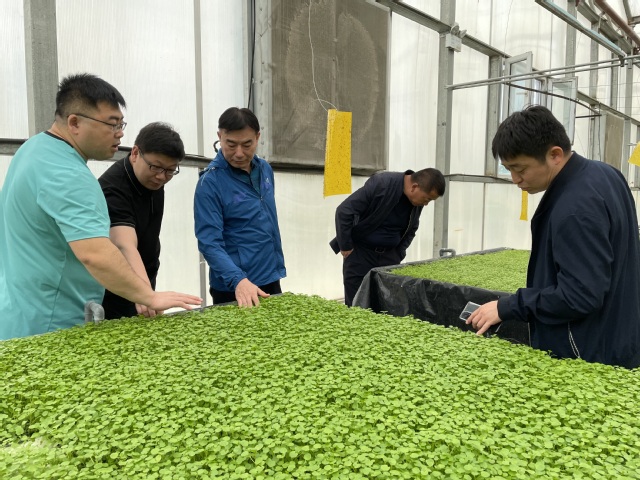 在第四师可克达拉市,吕新教授带领团队成员与第四师科技局相关负责人就第四师农业科学研究所目前在科学研究、技术推广、管理体制等方面存在的问题进行了深入交流,为第四师农业科学研究所体制机制改革建言献策。团队成员还前往第四师六十九团,就水培蔬菜种植、花卉育苗生产和空中草莓采摘等智慧化温室大棚建设进行了实地调研,对存在的问题进行了现场指导。