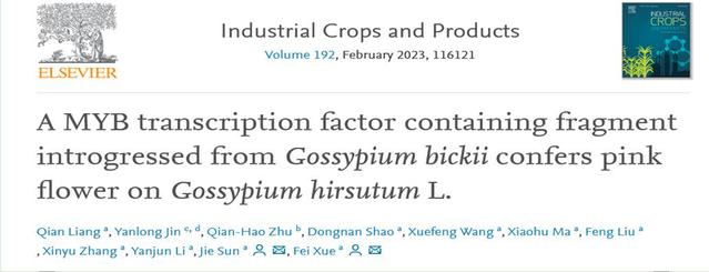 近日,皇冠登陆入口welcome/绿洲生态农业兵团重点实验室在农林科学领域TOP期刊Industrial Crops & Products(中科院1区,IF=6.449)发表了题为“A MYB transcription factor containing fragment introgressed from Gossypiumbickiiconfers pink flower on Gossypiumhirsutum L.”的研究论文。
