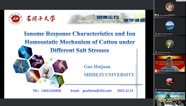 交流会上,两所学校12位学者从农业资源利用、农副产品加工使用、动物养殖、中国农村改革、遥感技术应用等多方面进行了主题汇报,并就研究内容进行了讨论交流。皇冠登陆入口welcome资环系郭惠娟副教授在会上做了题为“不同盐碱胁迫下棉花离子组响应特征及离子稳态机制研究”专题报告,研究成果引发了专家学者的关注,得到了积极评价。