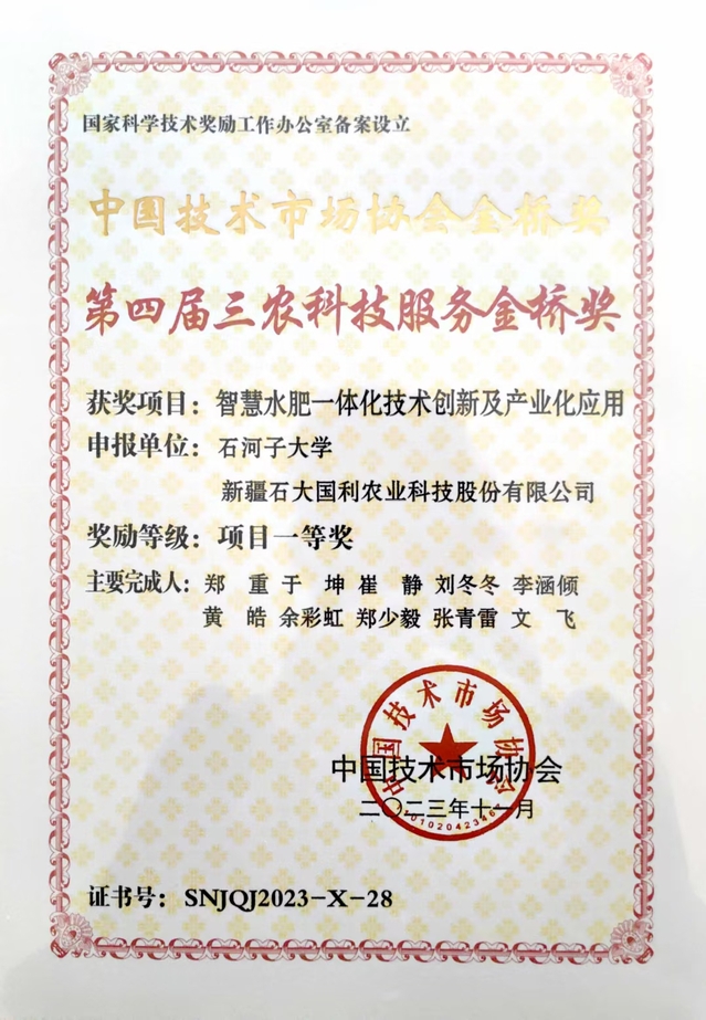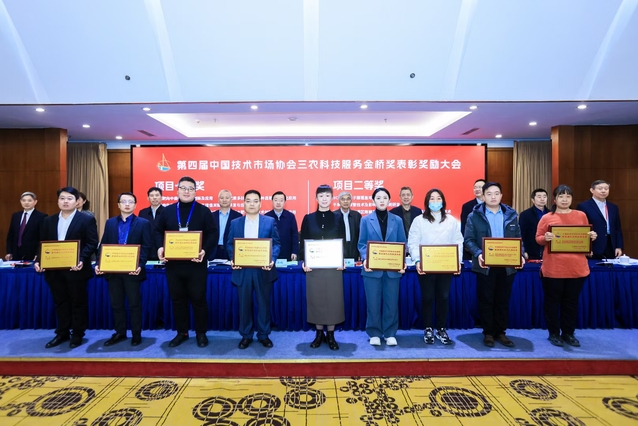 据悉,中国技术市场协会金桥奖是在科技部领导下,经国家科学技术奖励工作办公室批准设立,旨在表彰为促进科技成果转化和产业化方面取得显著成效的集体、项目和个人,是我国技术市场领域的最高奖项。三农科技服务金桥奖是中国技术市场协会金桥奖的子奖项,每两年评选一次,本届全国评选经过多环节评审,从1000余项提名中最终评选出项目奖115项,集体奖21项,个人奖90项。